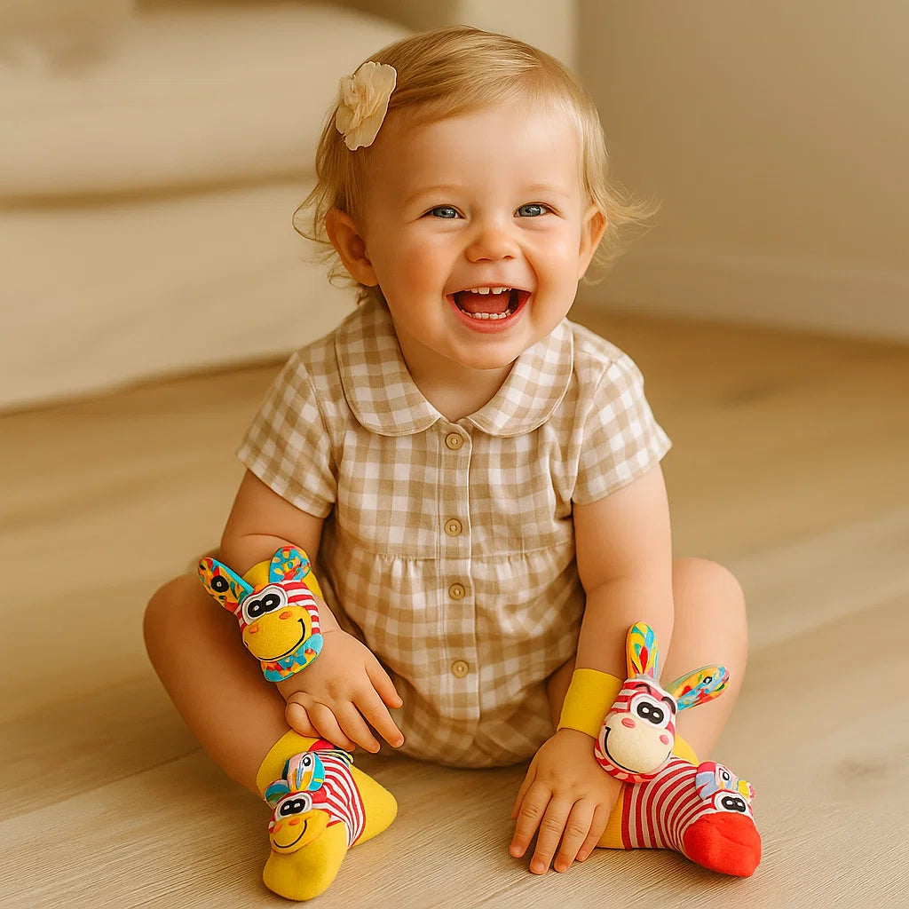 La den lille oppdage en verden av lekne lyder og livlige farger med dette søte settet med ranglearmbånd og sokker. Designet for å vekke nysgjerrighet og stimulere tidlig utvikling, forvandler denne myke leken hver bevegelse til morsom læring.