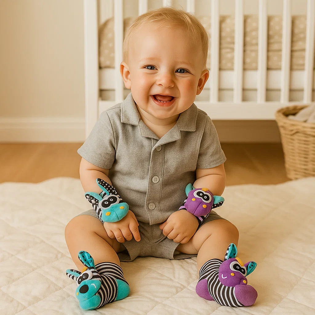 Babyrangle, håndledds- og sokkesett ⎜ Fargerike sensoriske leker for tidlig læring og utvikling av motoriske ferdigheter