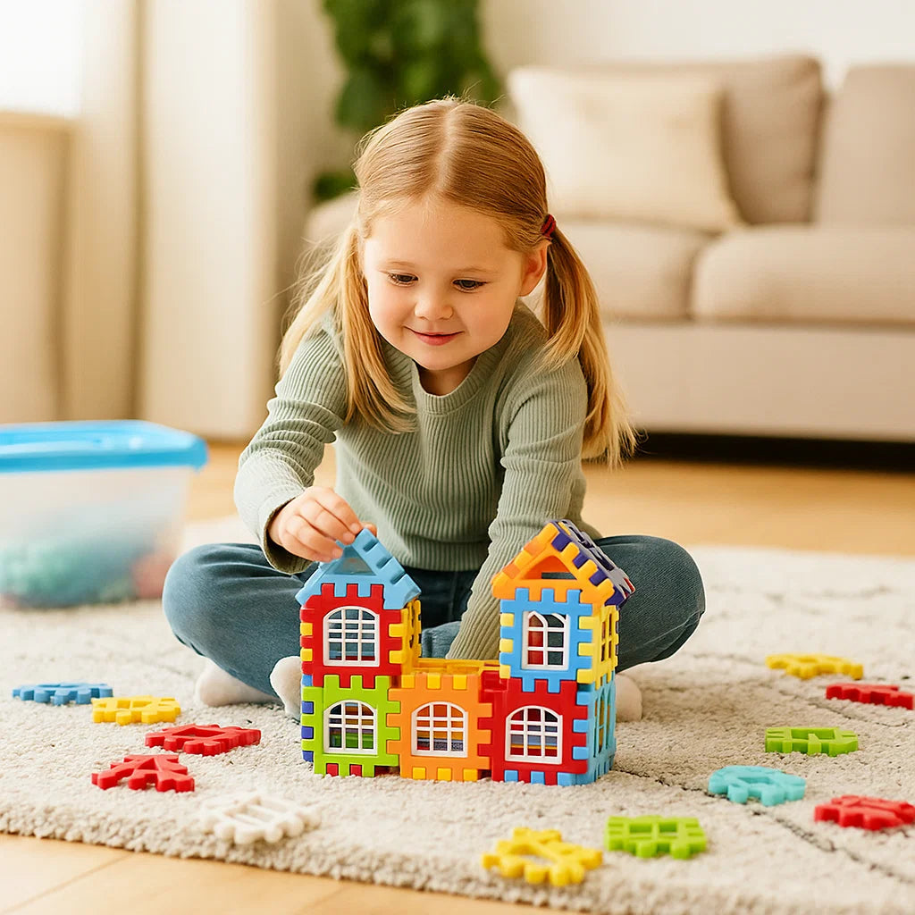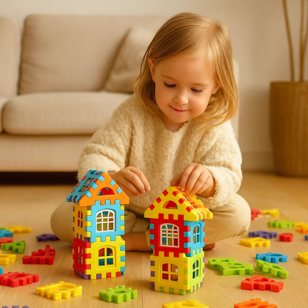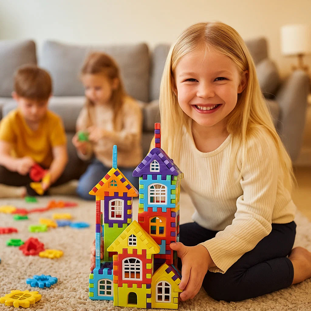 Slipp løs uendelig kreativitet med vårt Byggeklossesett for Barn – et levende, praktisk konstruksjonsleketøy designet for å vekke fantasi og utvikle viktige ferdigheter. Med sammenlåsende deler og realistiske vinduselementer inviterer dette settet barna til å designe sine egne fargerike hus, tårn og landsbyer, samtidig som de har det gøy og lærer gjennom lek.