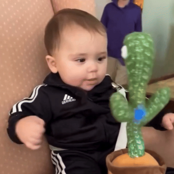 Gi glede, latter og bevegelse til barnets dag med den Dansende Kaktusleken – en myk musikalsk venn som synger, lyser opp og morsomt etterligner hvert ord barnet ditt sier. Denne glade kaktusen gjør vanlig leketid om til et morsomt musikalsk eventyr fylt med lyd, lys og bevegelse. Det er den perfekte kombinasjonen av interaktiv underholdning og utviklingsstøtte for voksende sinn.