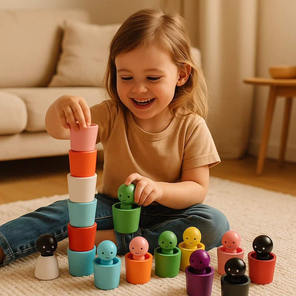 Gjør leketiden til en kraftfull læringsopplevelse med våre fargesorterende pluggedukker for barn. Designet med livlige farger og glatte trestykker engasjerer dette leketøyet unge sinn samtidig som det gjør tidlig læring spennende. Det er den perfekte måten å hjelpe barn å utforske, skape og vokse gjennom praktisk lek.