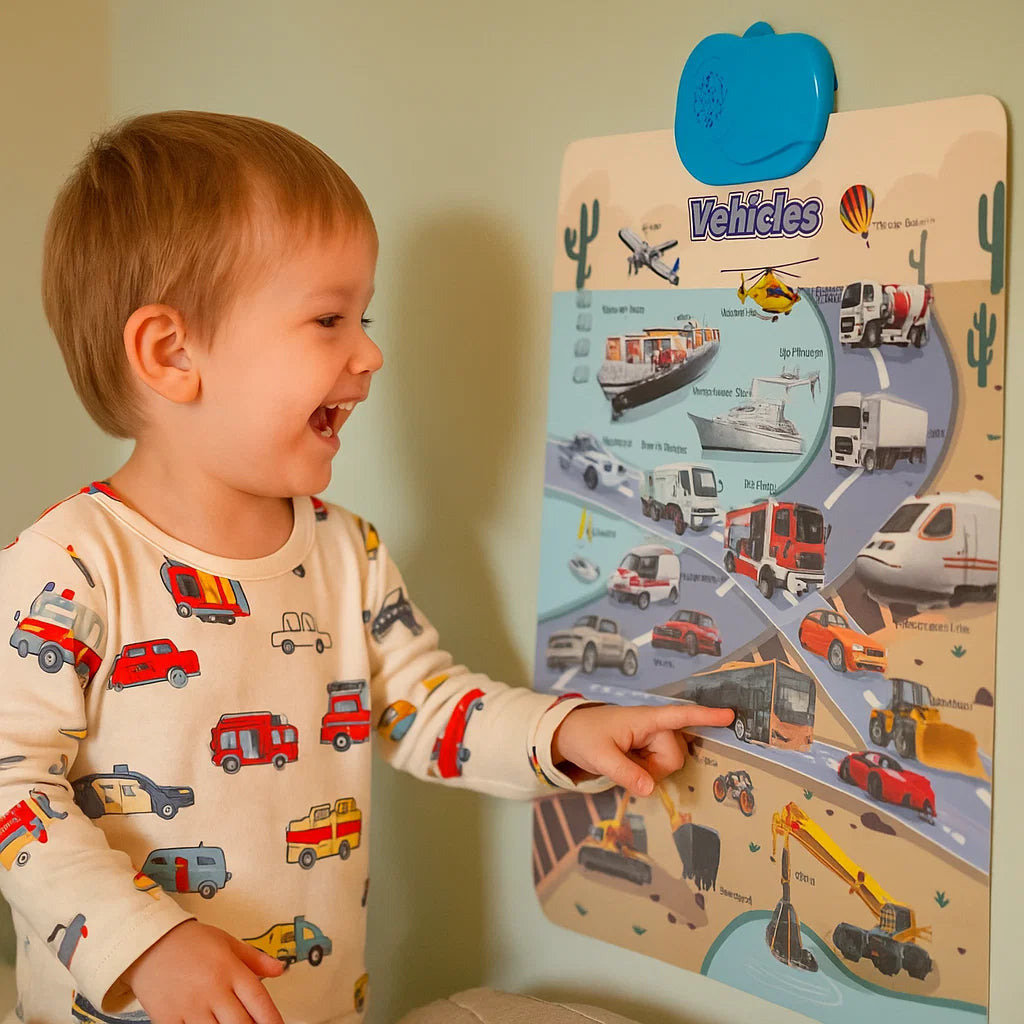 - 🔊 Interaktiv Berør-til-Lyd Læring: Bare et trykk aktiverer lyder og uttalte ord, og hjelper barna med å knytte bilder naturlig til uttale.