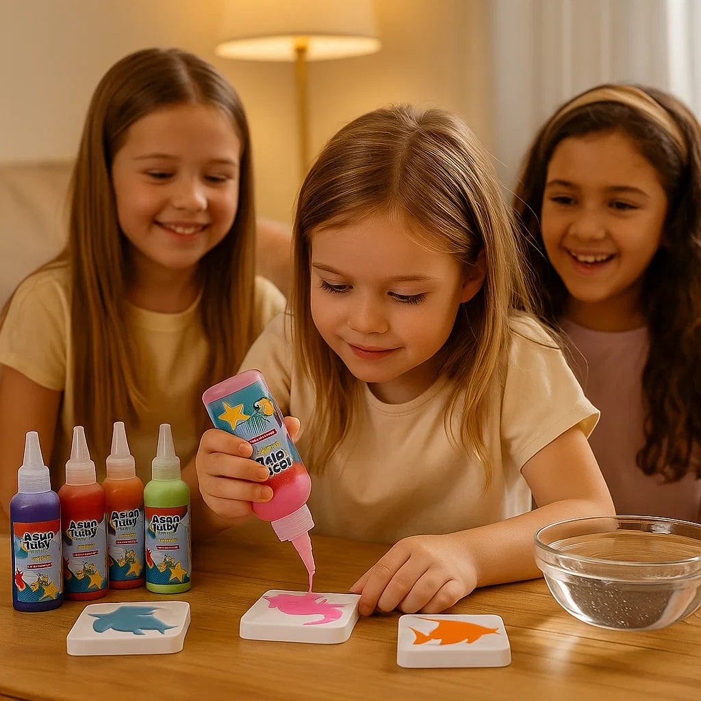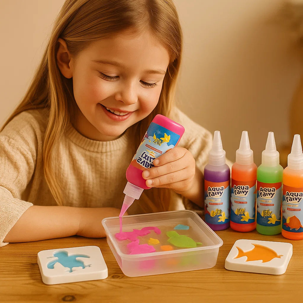 De lettklemte flaskene og gjenbrukbare formene gjør det enkelt for barna å lykkes på egen hånd. Hver ferdige skapning styrker selvtilliten deres og oppmuntrer dem til å prøve nye ideer med hver påfylling.