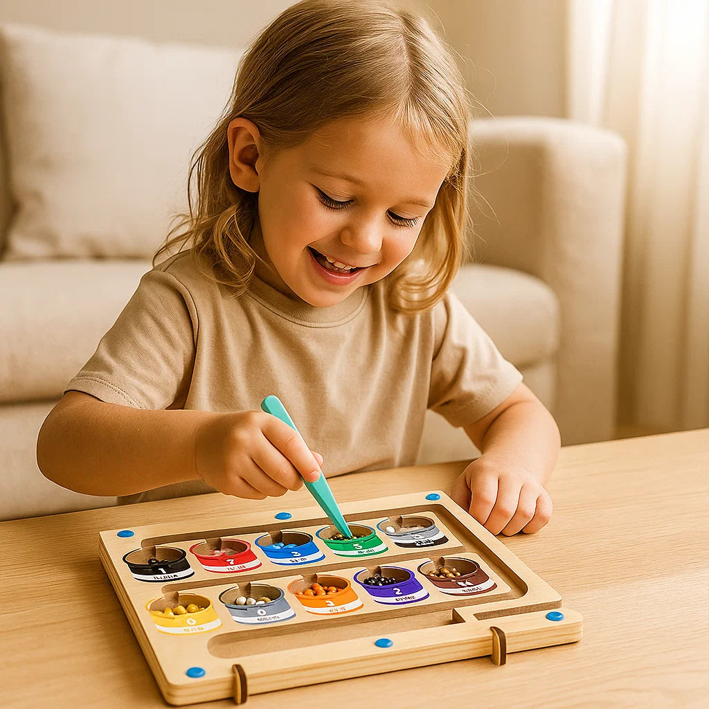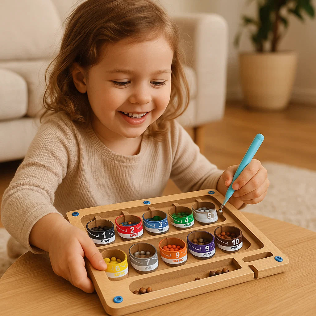 Gjør leketiden til en engasjerende læringsopplevelse med det Magnetiske Tretellebrettet – et pedagogisk spill som utvikler fargegjenkjenning, telleferdigheter og håndkoordinasjon. Med en magnetpenn leder barna fargerike kuler inn i matchende bøtter, samtidig som de utvikler viktige tidlige læringsferdigheter gjennom lekende utforskning.