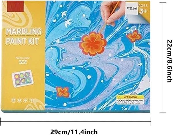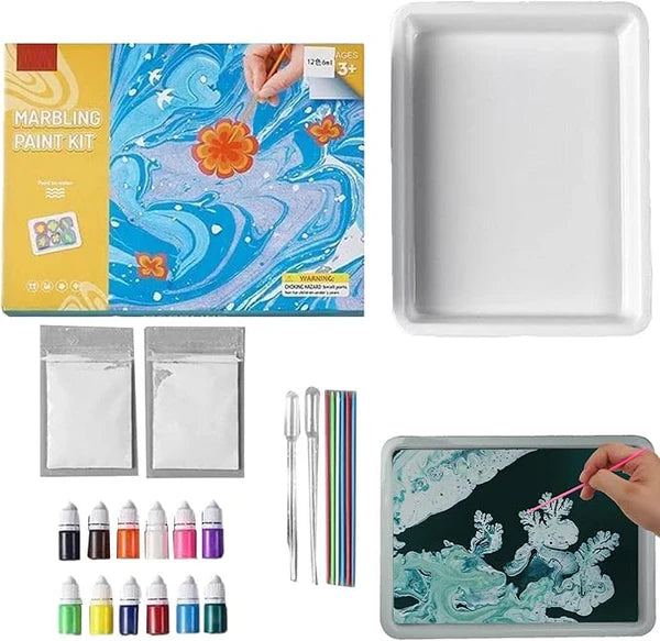 Marmoreringmalingssett for barn ⎜ Kreativt vannkunstsett med farger, verktøy og brett for morsom maling og læring