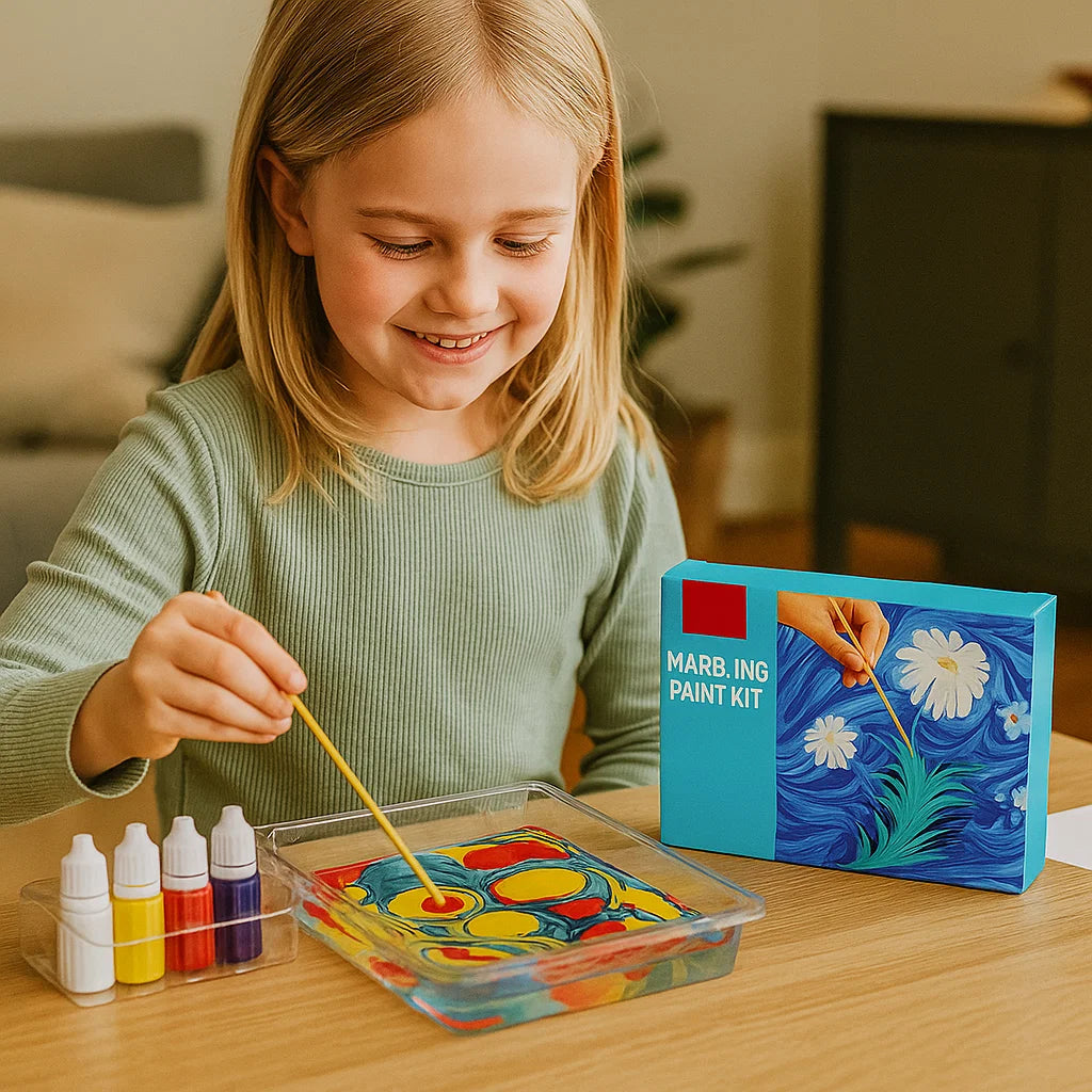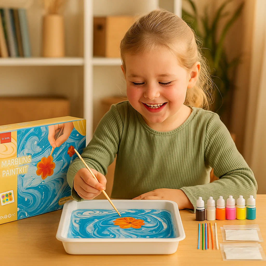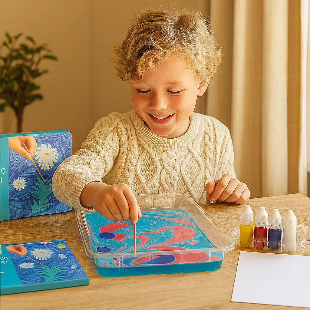 Dette settet introduserer barna til marmoreringens kunst på en leken og tilgjengelig måte. De lager ikke bare fantastiske bilder, men utvikler også tålmodighet og hånd-øye-koordinasjon mens de eksperimenterer med farger.