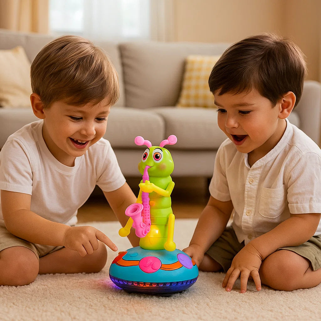 Dette leketøyet underholder ikke bare – det oppmuntrer også til fysisk utvikling ved å lokke babyer til å krabbe, rekke ut og utforske. Det er en morsom og trygg måte å gjøre hver lekestund til en liten treningsøkt fylt med glede og oppdagelser. Den snurrende bevegelsen og den livlige musikken stimulerer til aktivitet og hjelper babyer med å bygge styrke, koordinasjon og balanse. Det holder barnet engasjert samtidig som det støtter sunn vekst i deres viktigste utviklingsstadier