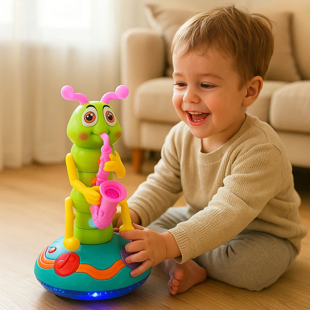 La den lille krabbe inn i en verden av farger, musikk og bevegelse med dette herlige Musikalske Billeleketøyet. Designet for å underholde og engasjere, spiller denne sjarmerende insektfiguren saksofon mens den snurrer og lyser opp, og skaper en magisk opplevelse som vekker nysgjerrighet og får babyer til å bevege seg. Det glade designet og de sanserike funksjonene bidrar til å forvandle vanlig leketid til et spennende eventyr av lyder og synsinntrykk.