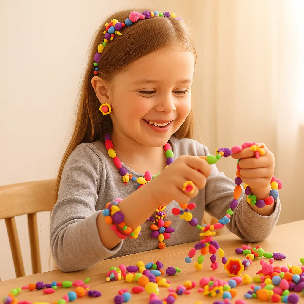 - 🧠 Støtter utvikling av finmotorikk: Når barn setter sammen og organiserer perlene, forbedrer de hånd-øye-koordinasjon, fingerferdighet og romforståelse.