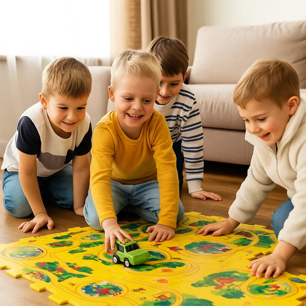 Gjør barnets leketid til en spennende reise med Puslespillskinne Lekematte for Barn. Dette fargerike og interaktive gulvspillet inviterer små racerbiler til å bygge, koble sammen og utforske sine egne veier, samtidig som det vekker kreativitet og praktisk moro.