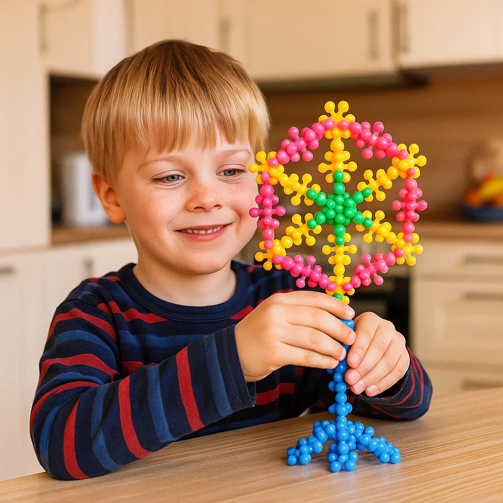 La barnet ditt dykke inn i en verden av farger, kreativitet og læring med Snøfnugg Byggeklosser For Barn, et morsomt og engasjerende 3D-puslespill designet for å inspirere unge sinn. Disse unikt formede, sammenlåsende brikkene gir utallige byggemuligheter – de fyrer opp fantasien samtidig som de utvikler viktige motoriske og kognitive ferdigheter på en praktisk og skjermfri måte.