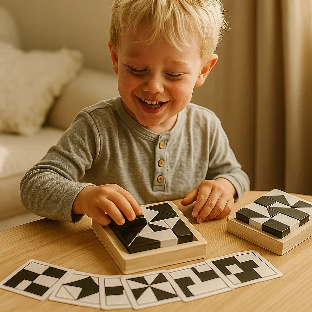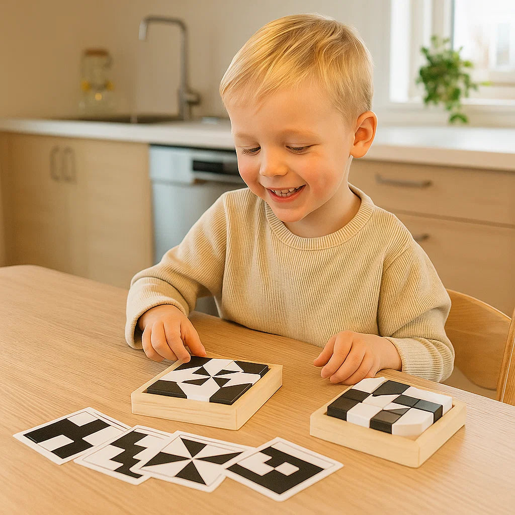 Dette puslespillet er designet for å utfordre barn fra 3 år og oppover, og hjelper dem gradvis å gå fra enkle mønstre til mer komplekse logikkutfordringer. Etter hvert som barna mestrer nye puslespill, bygger de selvtillit og en følelse av mestring som motiverer dem til å fortsette å lære.