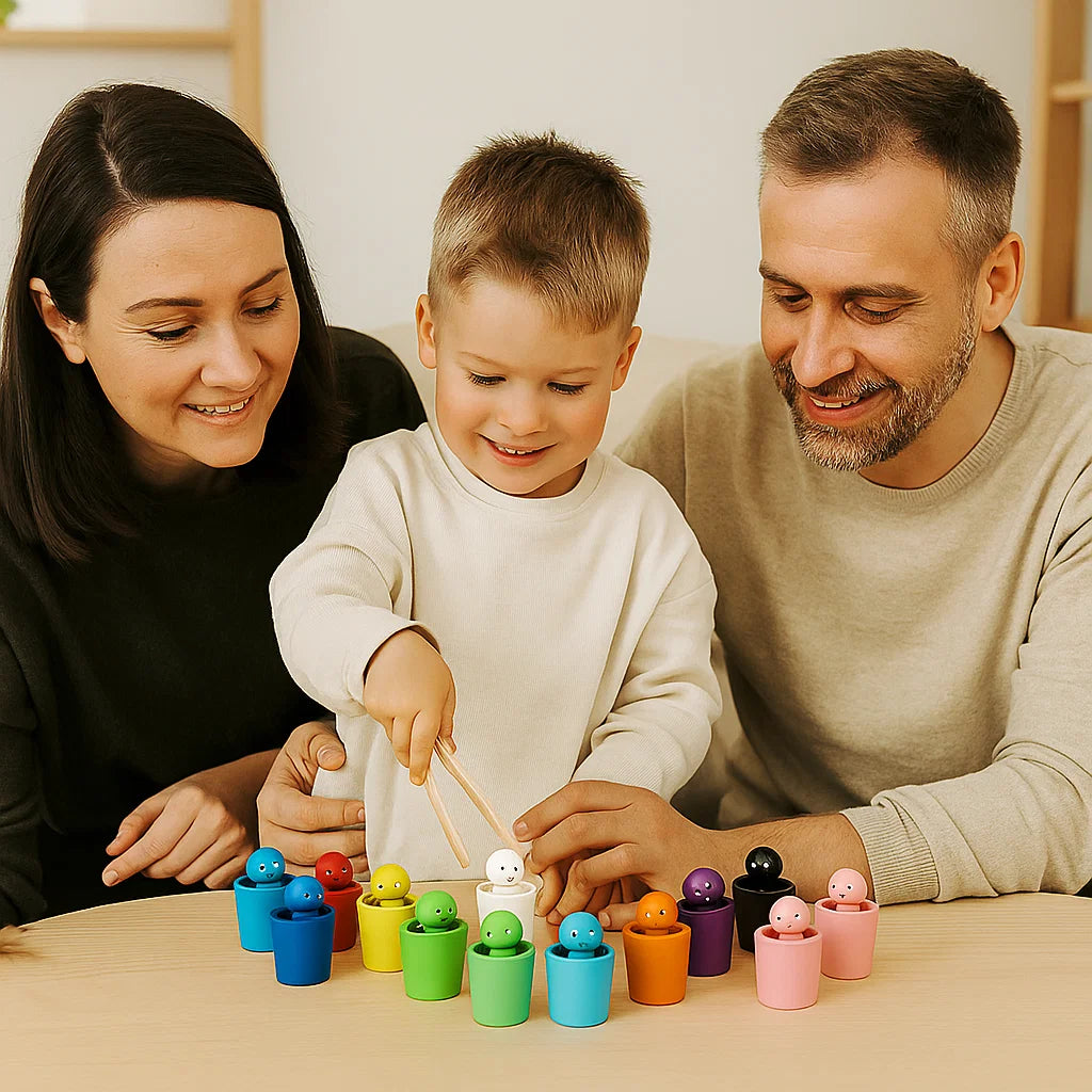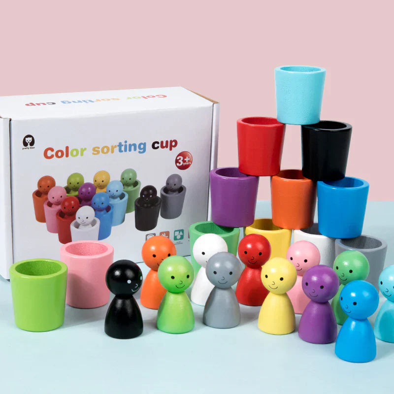 Treleketøy for fargematching for barn ⎜ Sorteringsspill med klypdukker og kopper for finmotorikk og visuell læring