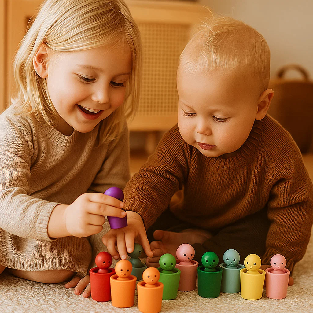 Gled barnets sanser og vekke nysgjerrigheten med treleketøyet Wooden Color Matching Toy – et morsomt sorteringsspill som parer muntre klypdukker med matchende kopper. Denne praktiske aktiviteten er designet for små barn og styrker visuell persepsjon, fargegjenkjenning og finmotorikk gjennom åpen lek som oppmuntrer til kreativitet og selvstendig utforskning.